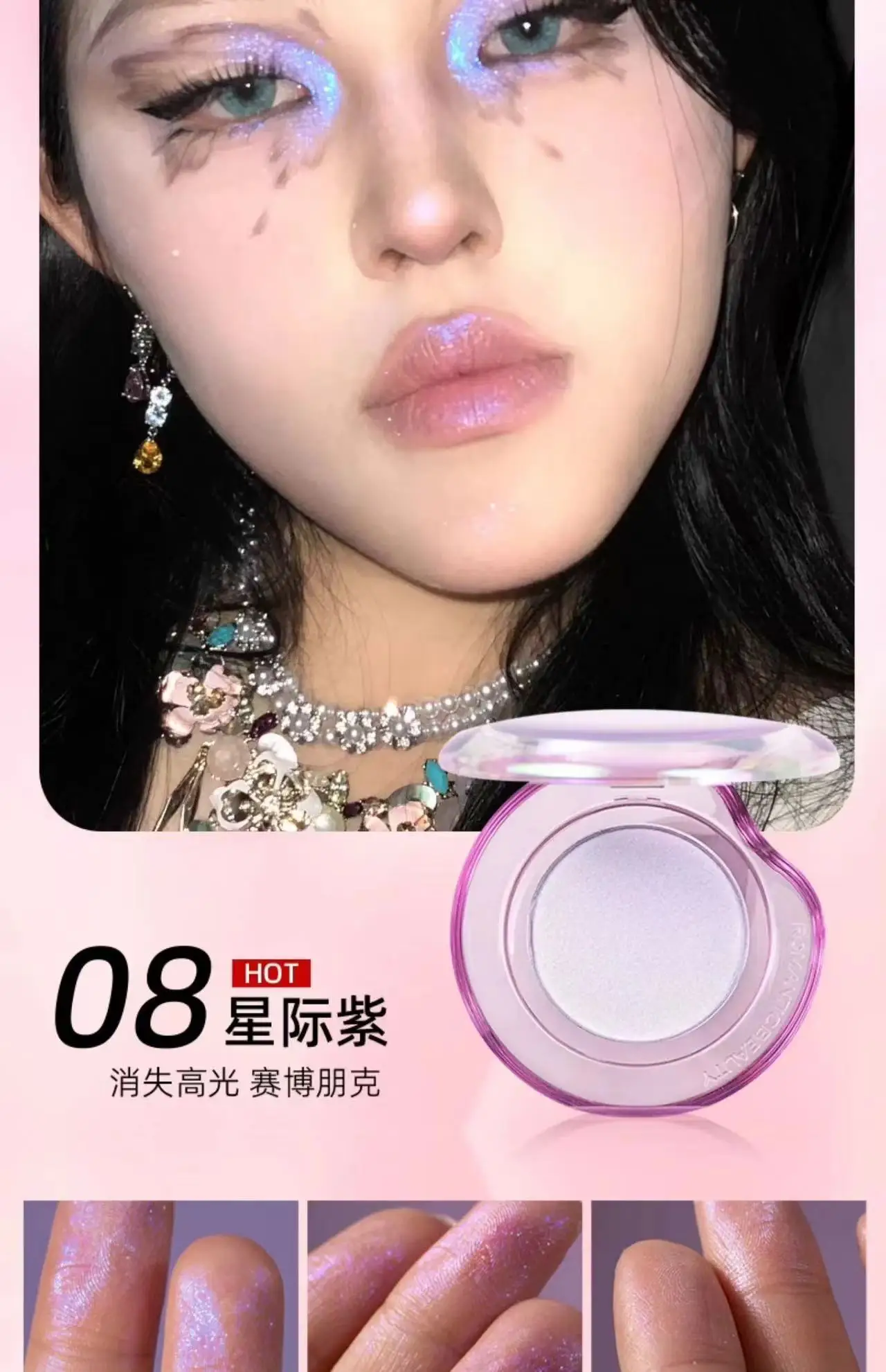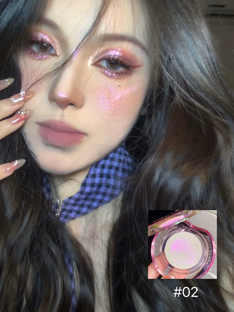 Infused with captivating pigments, this highlighter creates a stunning iridescent effect for an enchanting makeup look.