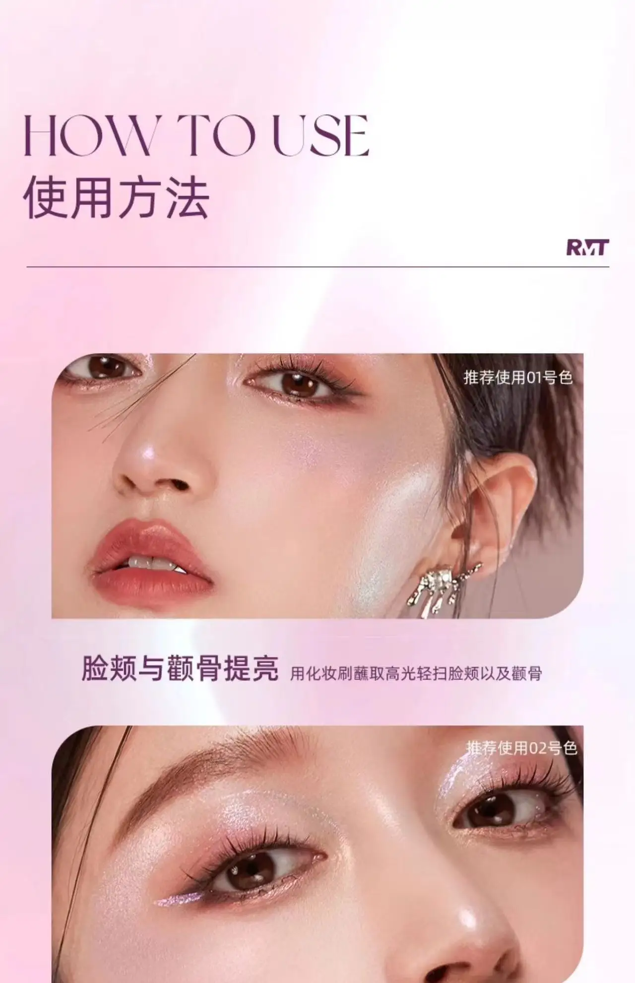 RMT High Gloss Chameleon Highlight Matte Purple Fine Powder Cream Blusher Shiny Face Brightening Integrated Plate ROMATIC Makeup